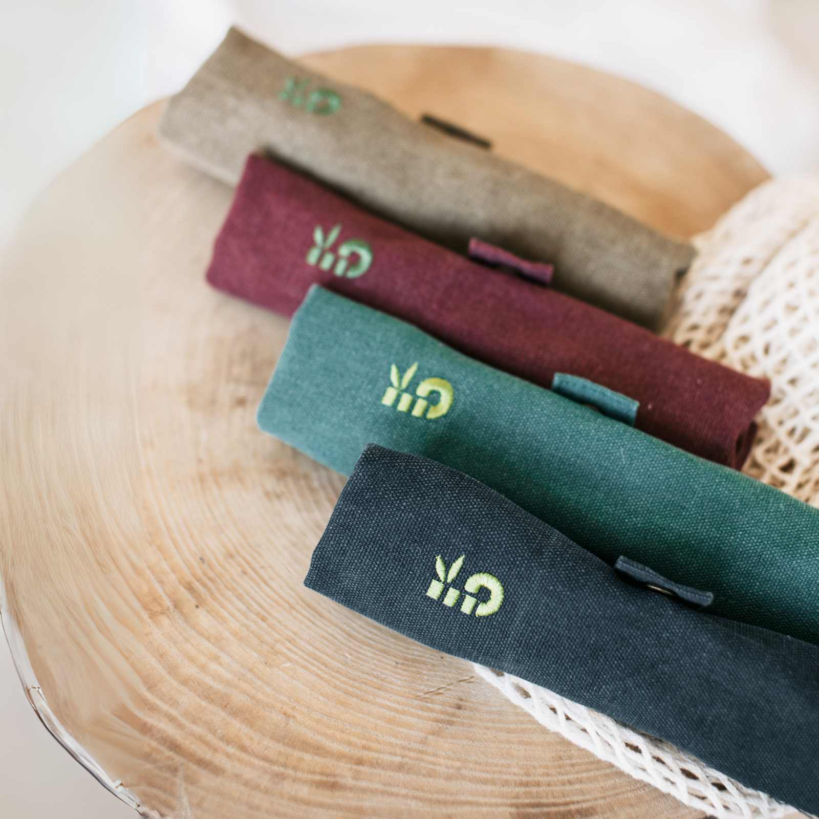 Pack de cubiertos de bambú personalizados en una bolsita: un regalo de marca de calidad para llevar siempre contigo.